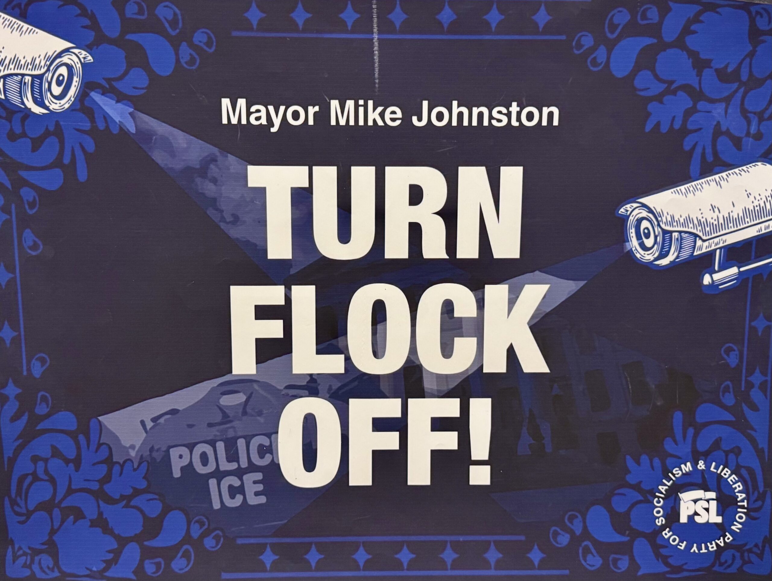 On October 22, we joined the community in a packed and powerful action to demand that Mayor Johnston turn the Flock cameras off. The turnout was incredible—standing-room-only crowds filled the main chamber, two overflow rooms, and even the hallways and sidewalks outside. City Council members Sarah Parady, Serena Gonzales-Gutiérrez, and Shontel Lewis stood in solidarity with the community, denouncing this executive overreach and the erosion of democratic process.